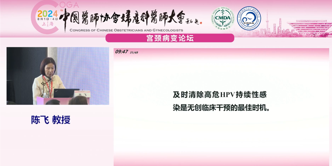 北京協(xié)和醫院陳飛教授就《清除高危HPV無(wú)創(chuàng )臨床干預》為題進(jìn)行報告: