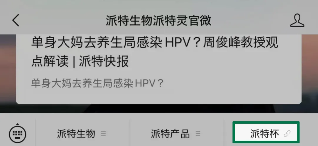 點(diǎn)擊“派特生物派特靈官方微信”底部“派特杯”按鈕
