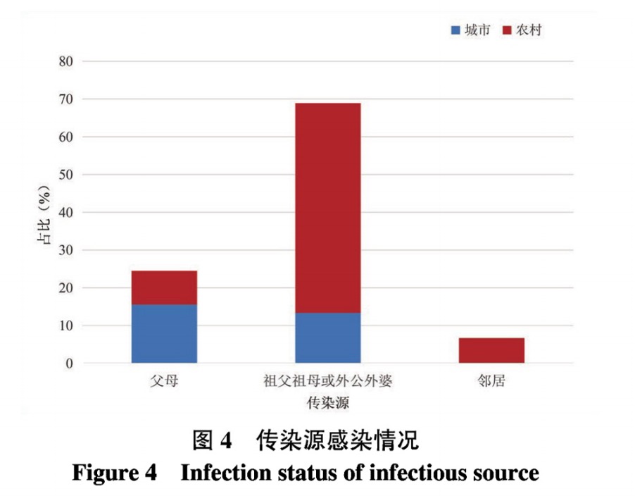 本研究結果中女患兒約占總數的68.89%,考慮與生理解剖結構因素有關(guān)?本研究中患兒發(fā)病部位多見(jiàn)于肛周(73.33%),與其他研究結果相同[3,5],考慮原因是幼兒皮膚薄嫩,便后擦拭的反復摩擦造成局部皮膚屏障受損,容易導致HPV的感染?另外,本研究中農村患兒占比較高,這與父母外出打工,幼兒長(cháng)期留守有關(guān)?他們大多都由祖父母一輩老年人照料,衛生習慣和防病理念較差,而且近幾年老年人性病發(fā)病率逐年升高,主要集中在農村[6-7],如果患有尖銳濕疣的老人不注意清潔衛生,在手部攜帶病毒的情況下護理小孩,給小孩擦拭清潔外陰及肛門(mén),可能導致幼兒感染?