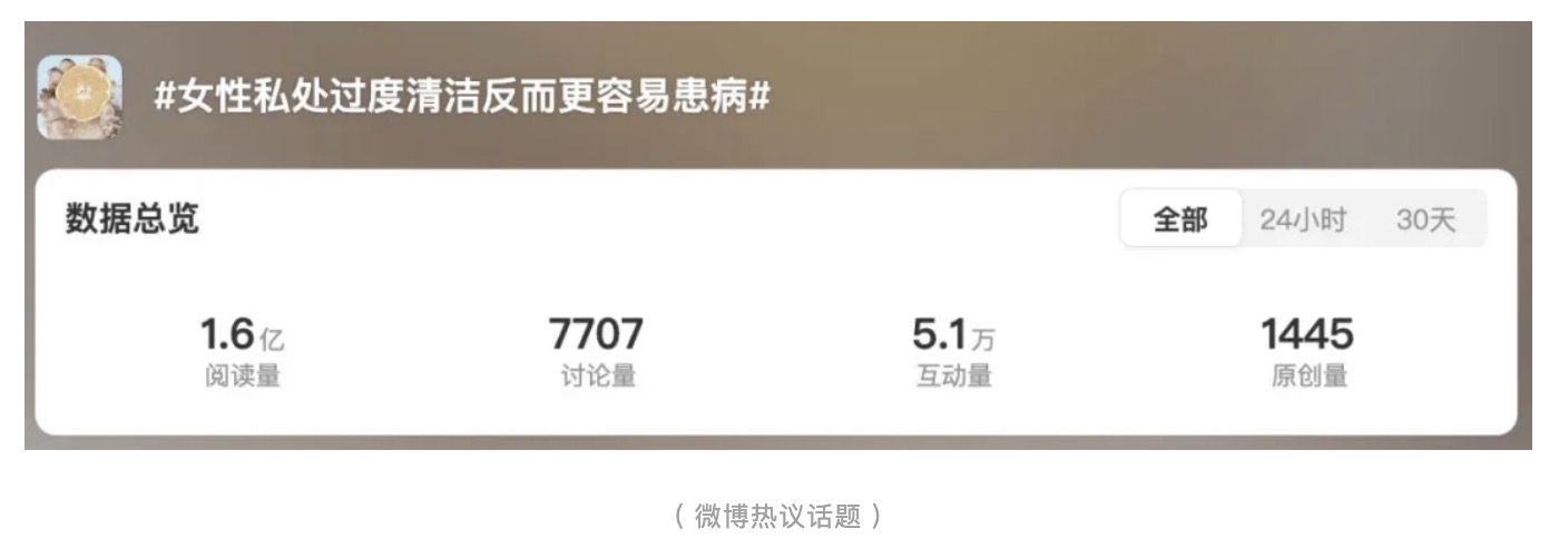 最近,微博上的一條熱搜引起了大家的關(guān)注——“女性私處過(guò)度清潔反而更容易患???”。截止截稿,該話(huà)題已被1.6億人瀏覽、討論。