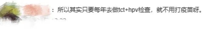 本次話(huà)題中,有網(wǎng)友評論“只要每年去做TCT+HPV檢查,就不用打疫苗呀?!?/span>