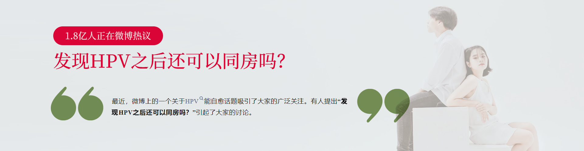 最近,微博上的一個(gè)關(guān)于HPV能自愈話(huà)題吸引了大家的廣泛關(guān)注。有人提出“HPV之后還可以同房嗎?”引起了大家的討論。
